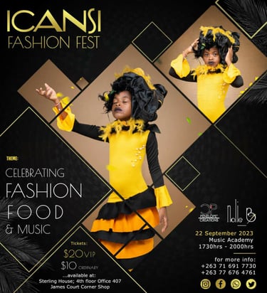 The inaugural Icansi Fashion Fest, which took place at the Music Academy Bulawayo, was a vibrant celebration of fashion, food, and music. It is the brainchild of Noliwe Mhlope of "Nolie. b. Designs" and Penelope Lacha of ''PenelopeCreationz" and was meant to be a platform to promote young and upcoming artists. The event featured a runway show showcasing innovative fashion designs, stage performances by emerging artists, and participation from fashion models who traveled from outside Zimbabwe to join us. The response was positive, highlighting the potential of this festival to promote the arts and culture of Bulawayo on a larger scale.